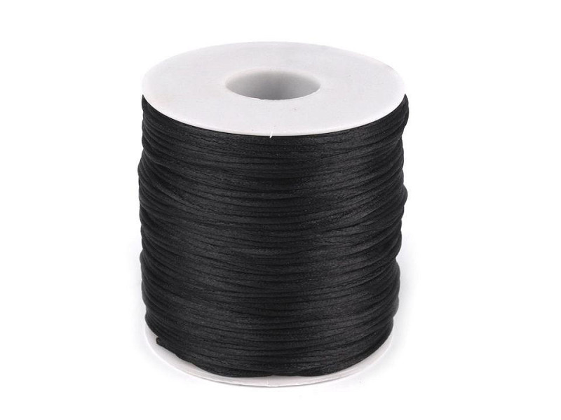 Sznurek satynowy, nylonowy, wytrzymały. Sznurek można wykorzystać do tworzenia biżuterii, szycia torebek i plecaków, zdobienia itp. Sznurek ma średnicę 1mm i jest idealny do plecionek i shamballa. Sznurek nie farbuje, delikatnie się błyszczy i topi się co pozwala na łatwe zakańczanie ozdoby.